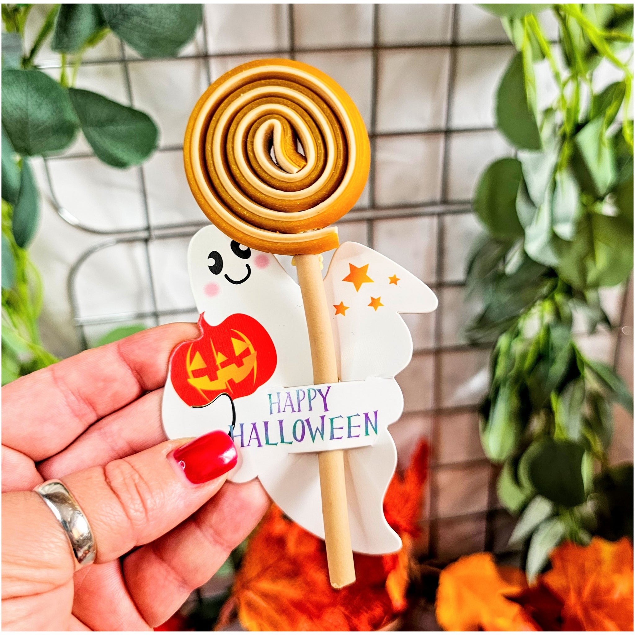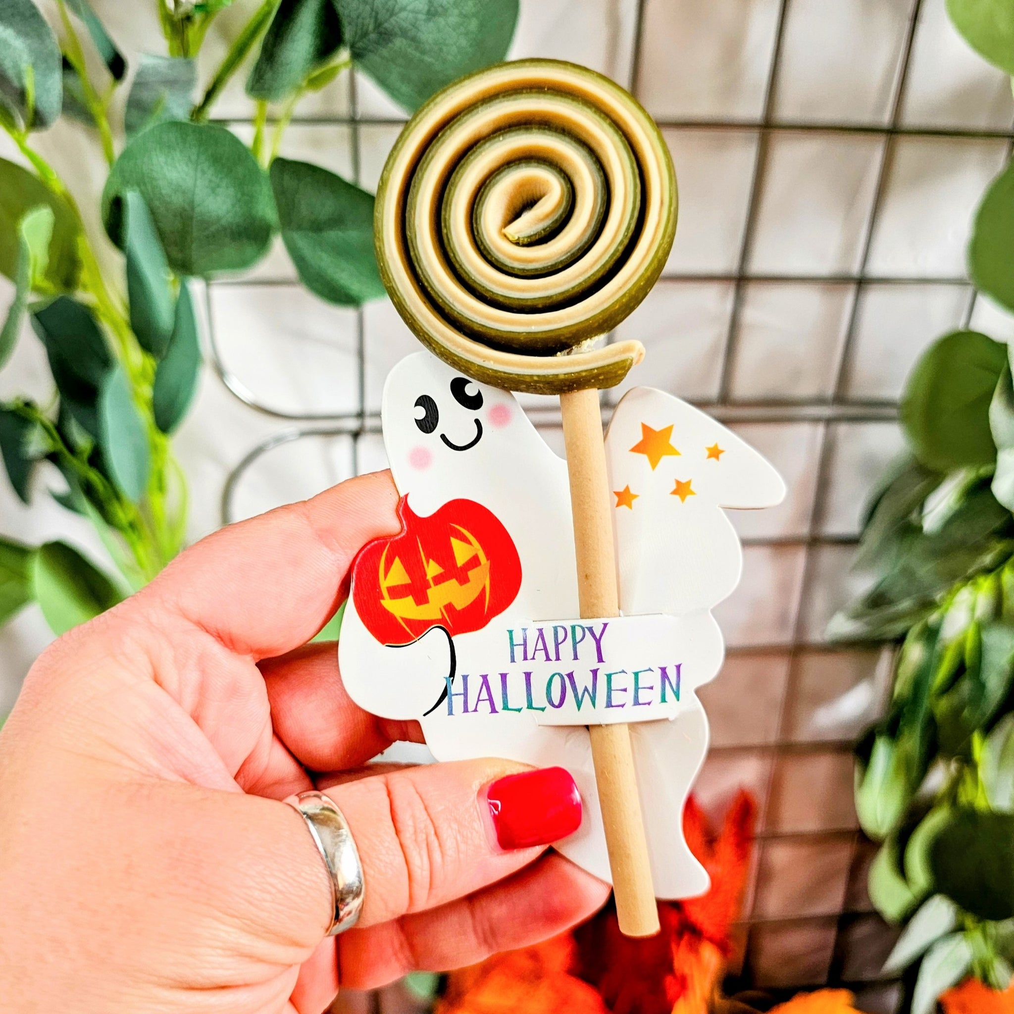 Friendly little ghosts carrying your doggo's lollipops, they make a delightful treat or gift your furry friend will love. Perfect for celebrating the season with a playful twist, these tasty goodies bring a touch of magic to your pup’s festivities.